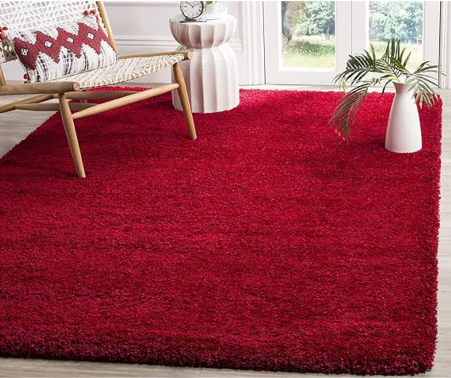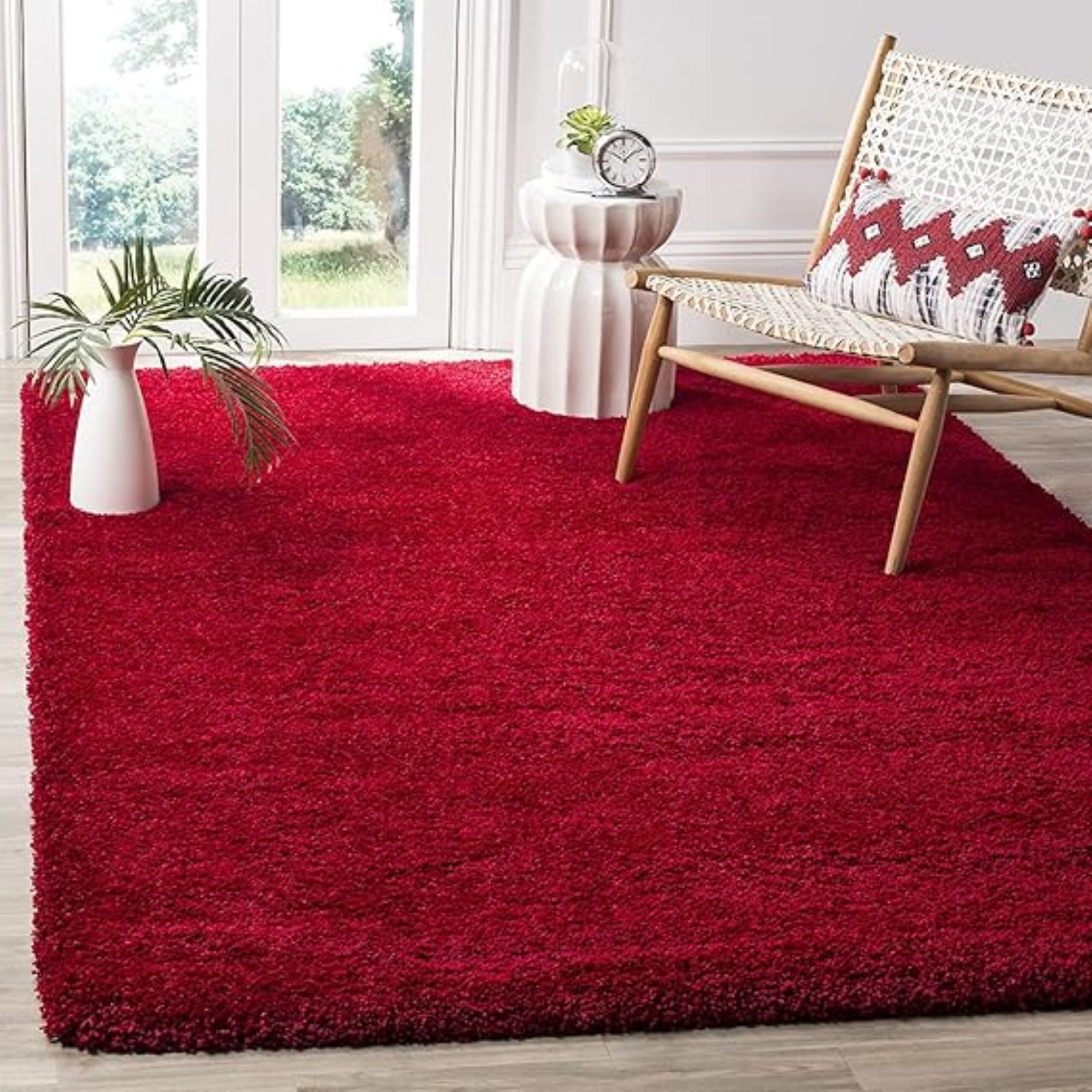 Rojo Sólido Shaggy Rug